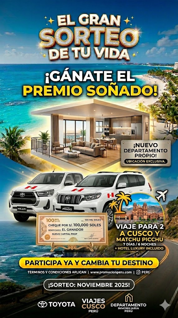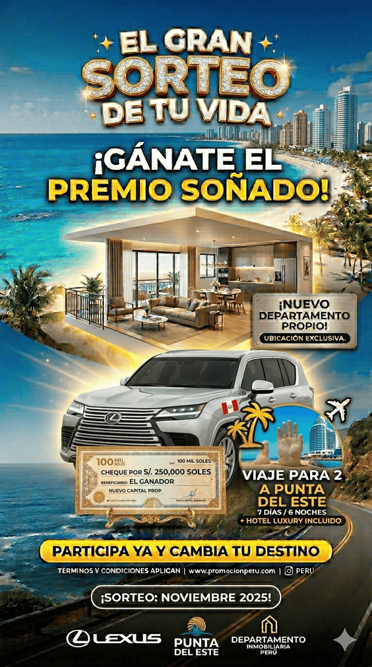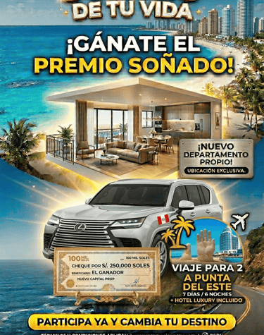 Departamento + Camioneta Lexus + Viaje + cheque de 250 mil soles